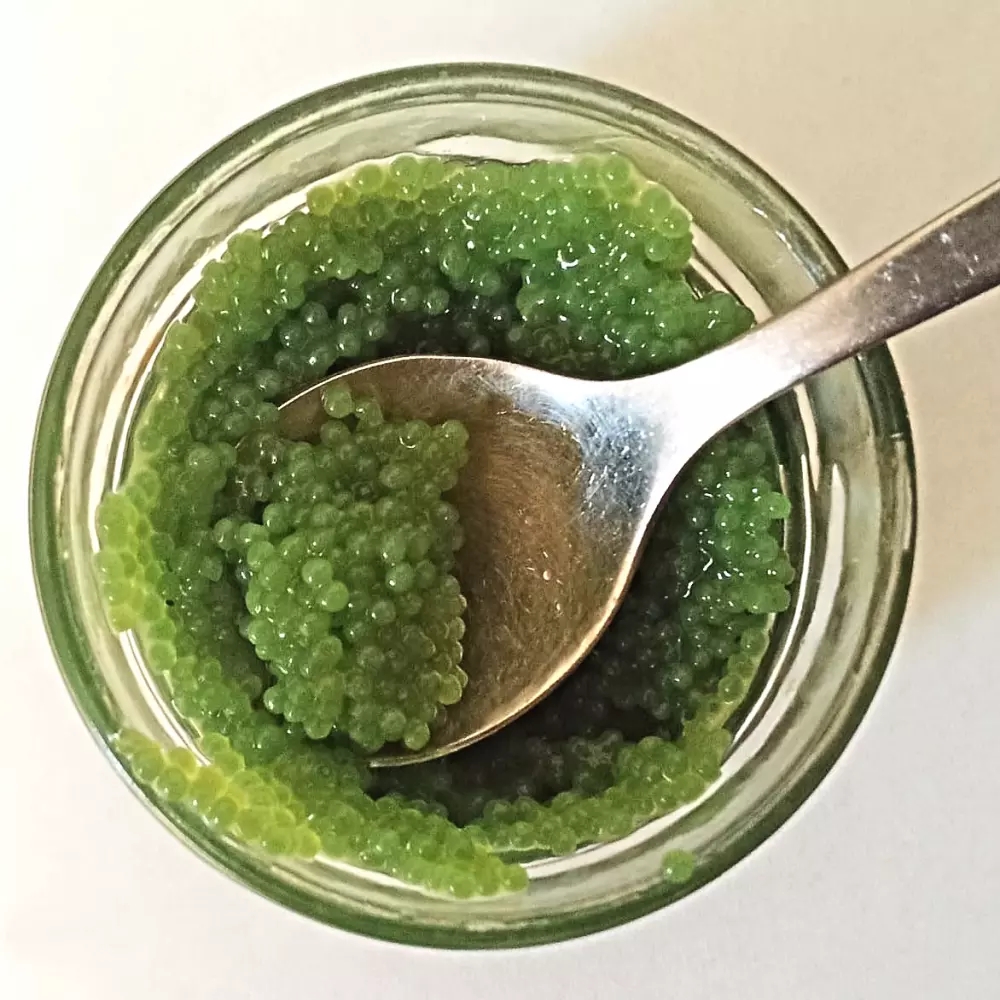 Dekoriert Häppchen, Reis- oder Gemüse-Gerichte mit Cavi-Art „Wasabi“ und seiner typischen Wasabi-Schärfe. Die Kügelchen sind ein Augenschmaus, färben nicht ab und zerploppen im Mund wie echter Kaviar. Sie lassen sich auf kalten und warmen Gerichten verwenden.